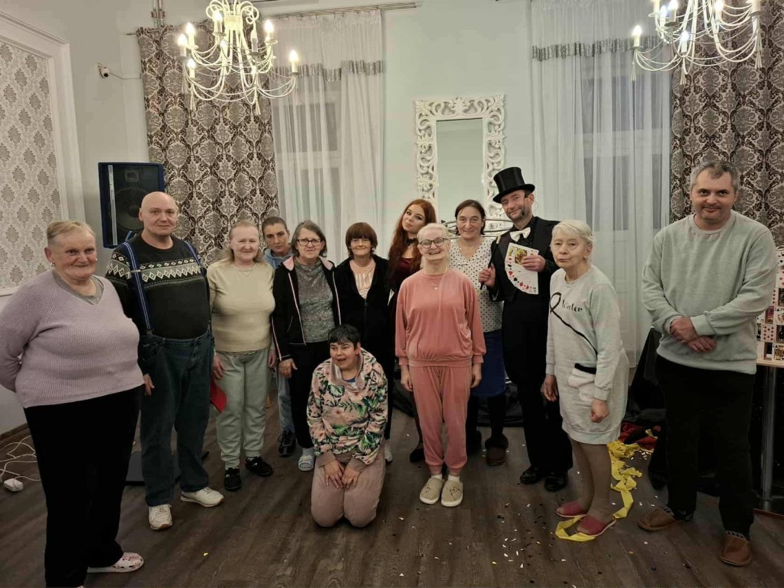 3 listopada 2025 r. nasz Dom odwiedził niezwykły gość – iluzjonista wraz ze swoją asystentką, którzy zabrali naszych Mieszkańców w prawdziwie magiczny świat iluzji. Podczas występu mogliśmy podziwiać niezwykłe sztuczki, które wzbudziły zachwyt, śmiech i ogromne zdumienie. Każdy trik budził coraz większe emocje, a atmosfera pełna była radości i pozytywnej energii. Serdecznie dziękujemy artystom za to wspaniałe spotkanie i niezapomniane chwile, które na długo pozostaną w naszej pamięci. To był dzień pełen uśmiechów i prawdziwej magii.