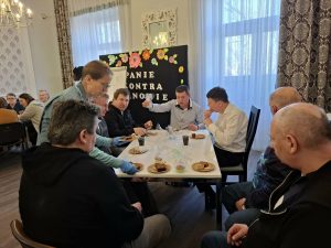 10 marca 2026 r. w naszym Domu odbyło się spotkanie z okazji „Dnia Mężczyzn”. Na wspólną zabawę zaprosiliśmy zaprzyjaźnionych uczestników z Warsztatu Terapii Zajęciowej w Dzierżaninach. Dzisiejsze spotkanie obfitowało w konkursy, smaczny poczęstunek oraz dużo śmiechu i dobrej atmosfery. To był bardzo miło spędzony czas, który na długo pozostanie w naszej pamięci.