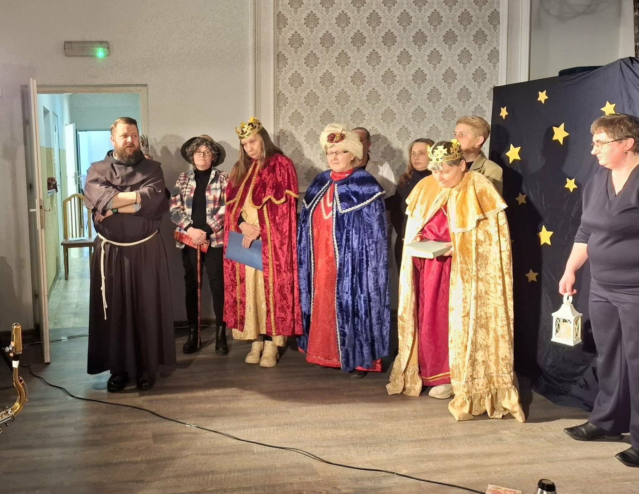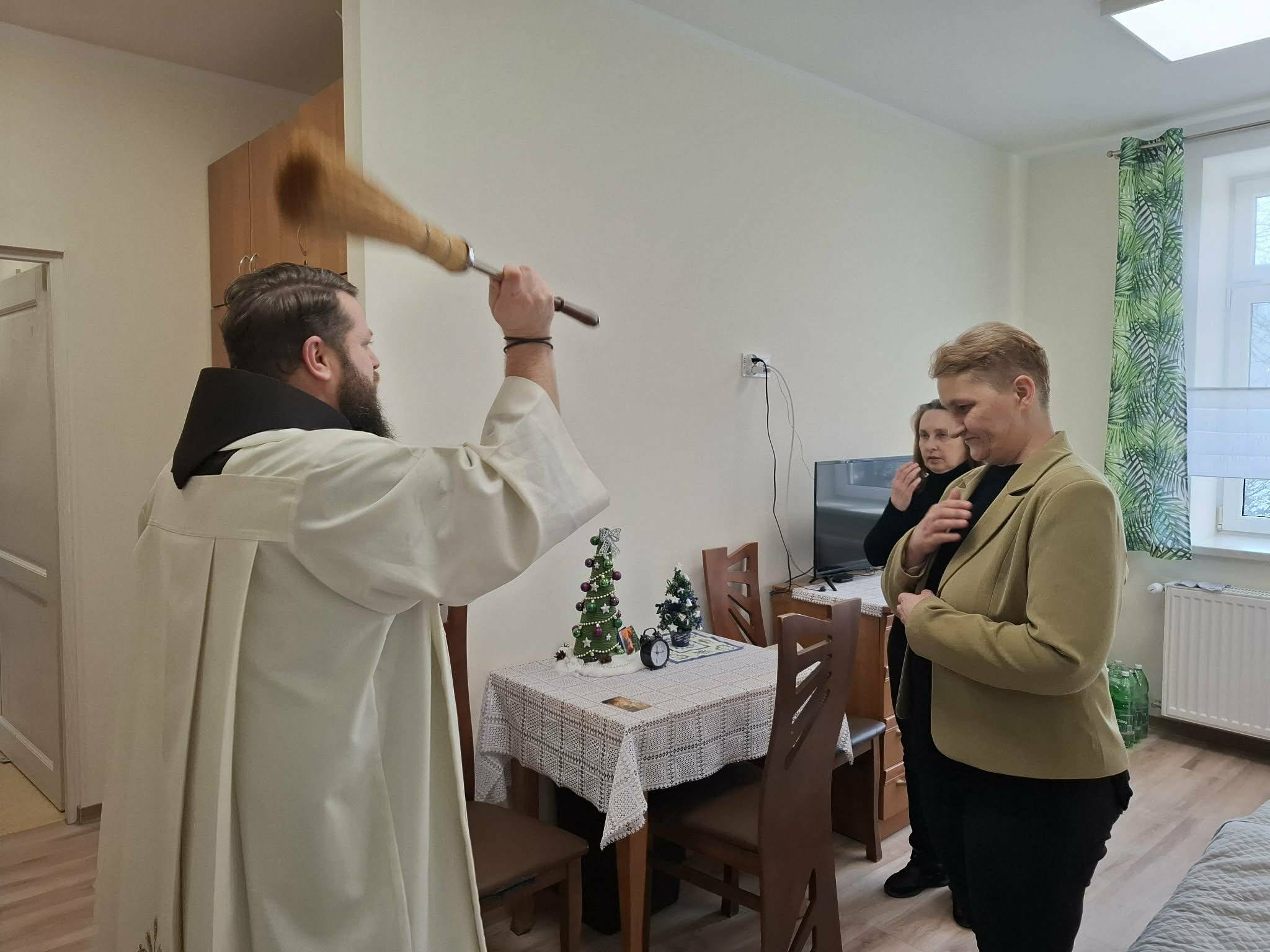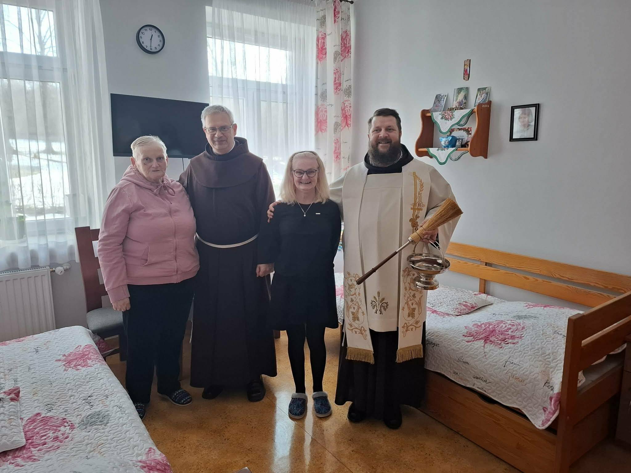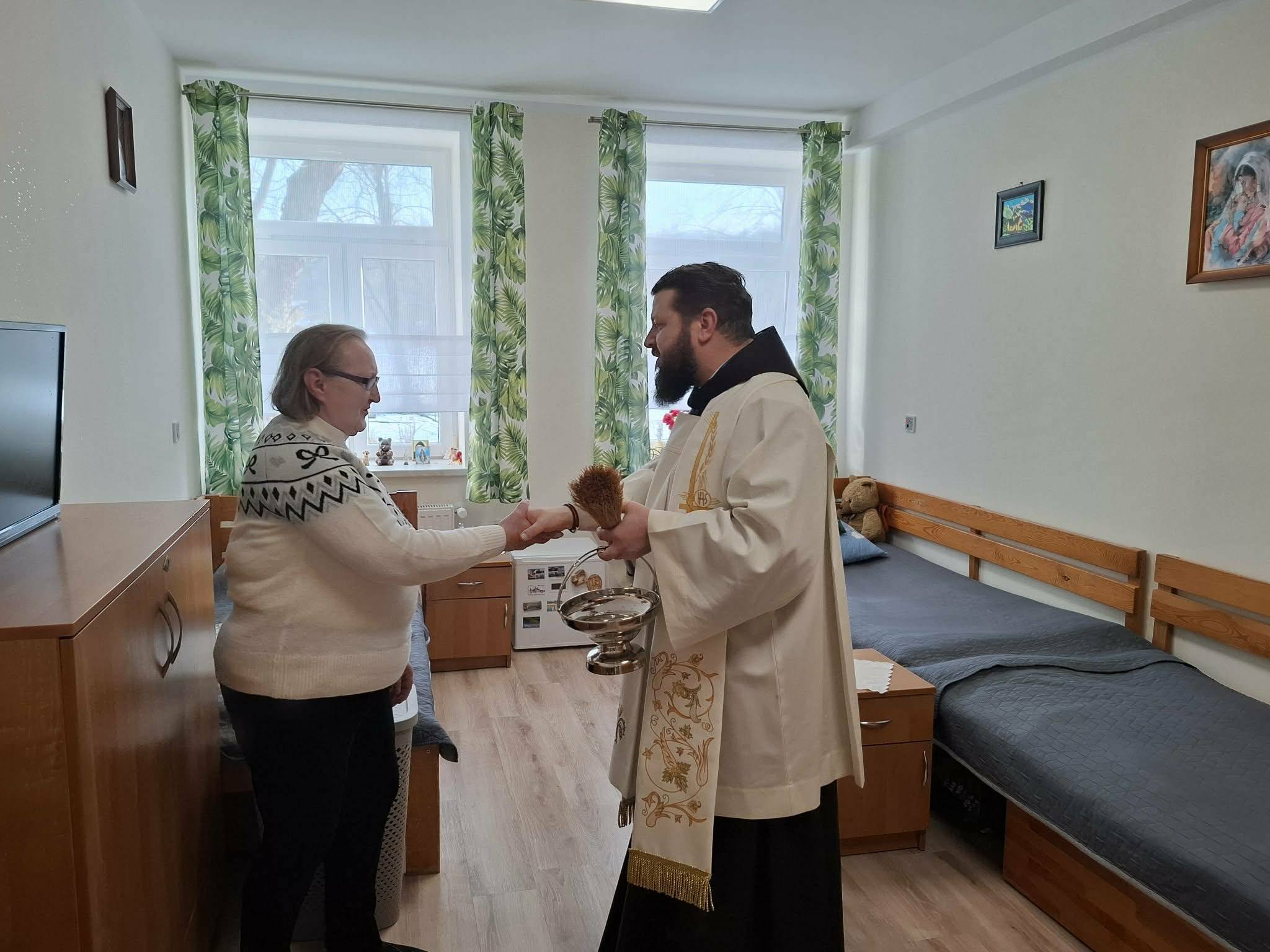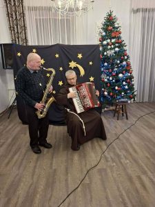 28 stycznia 206 r. w naszym Domu odbyła się wizyta duszpasterska, która rozpoczęła się spektaklem jasełkowym pt. „Narodziny nadziei” w wykonaniu Mieszkańców naszego Domu. Po przedstawieniu nie zabrakło wspólnego śpiewu kolęd przy akompaniamencie akordeonu i saksofonu. Następnie ojciec Szymon odmówił modlitwę błogosławieństwa Domu oraz poświęcił wszystkich zebranych w świetlicy, po czym udał się do pokoi Mieszkańców.