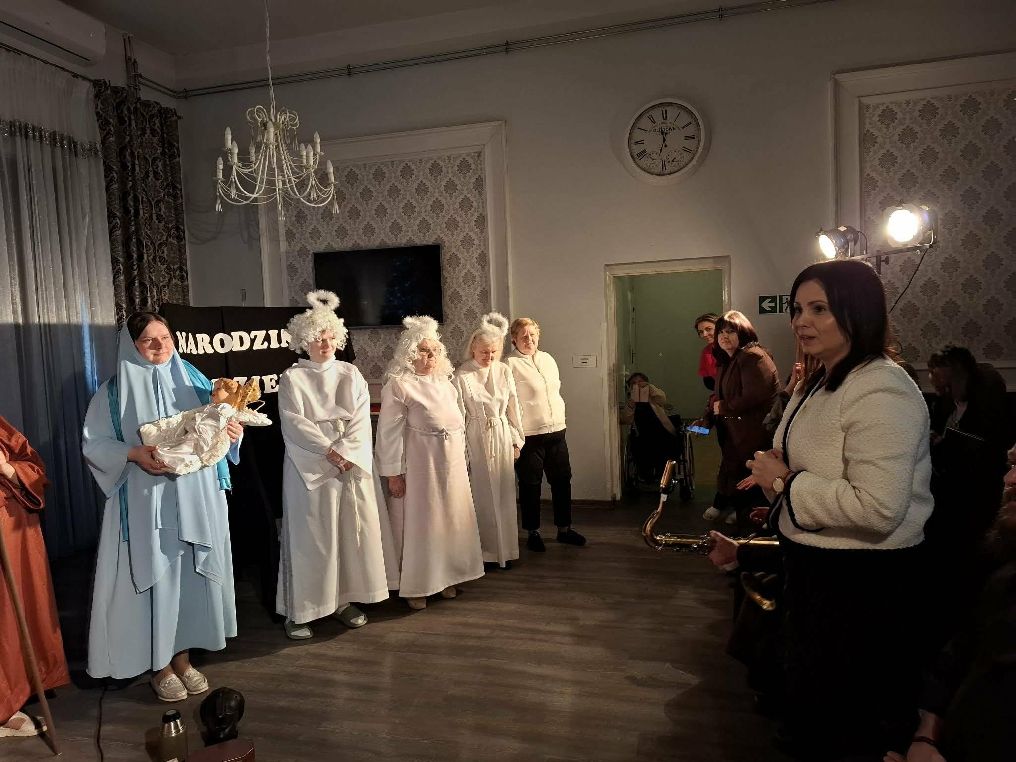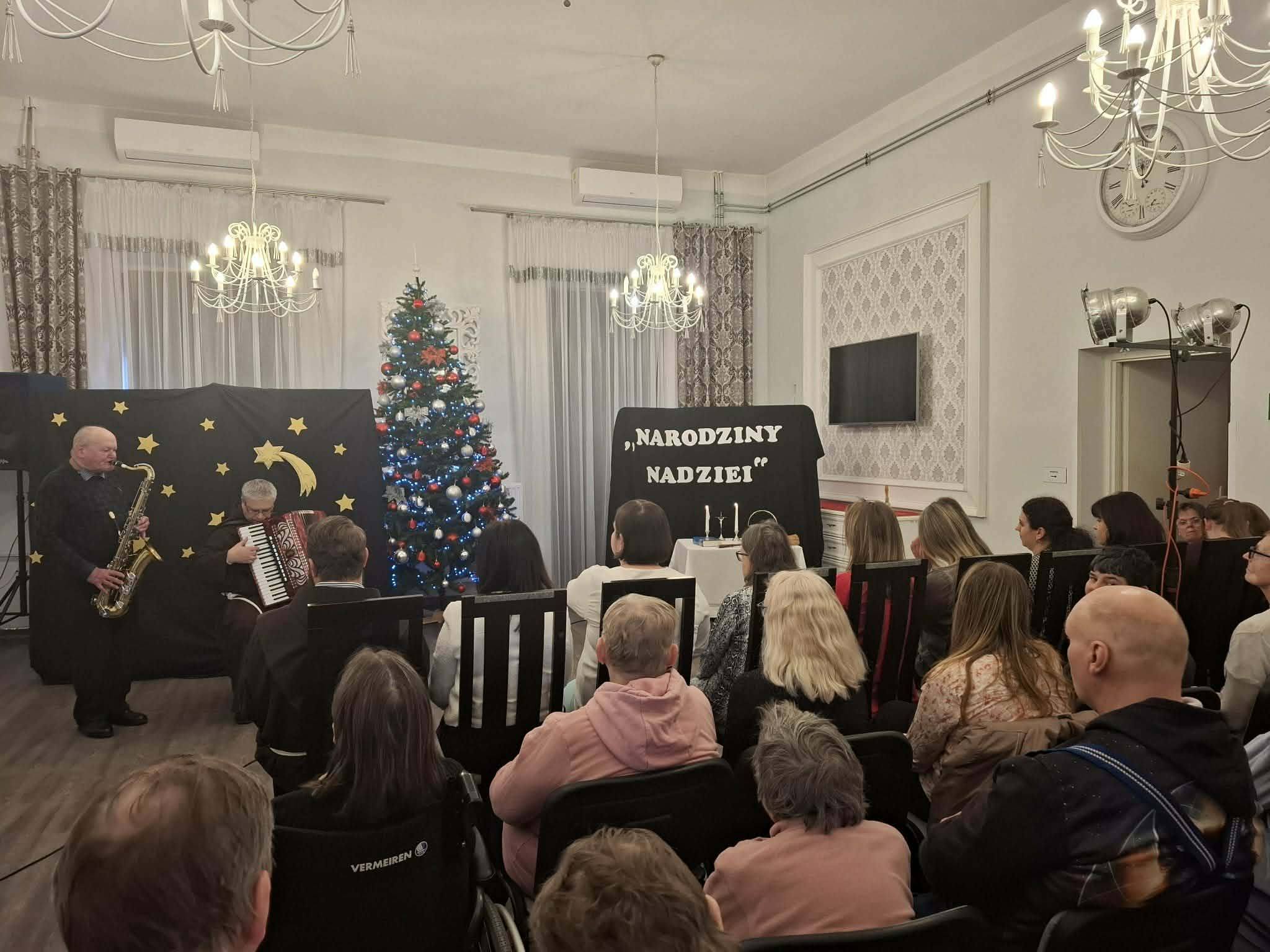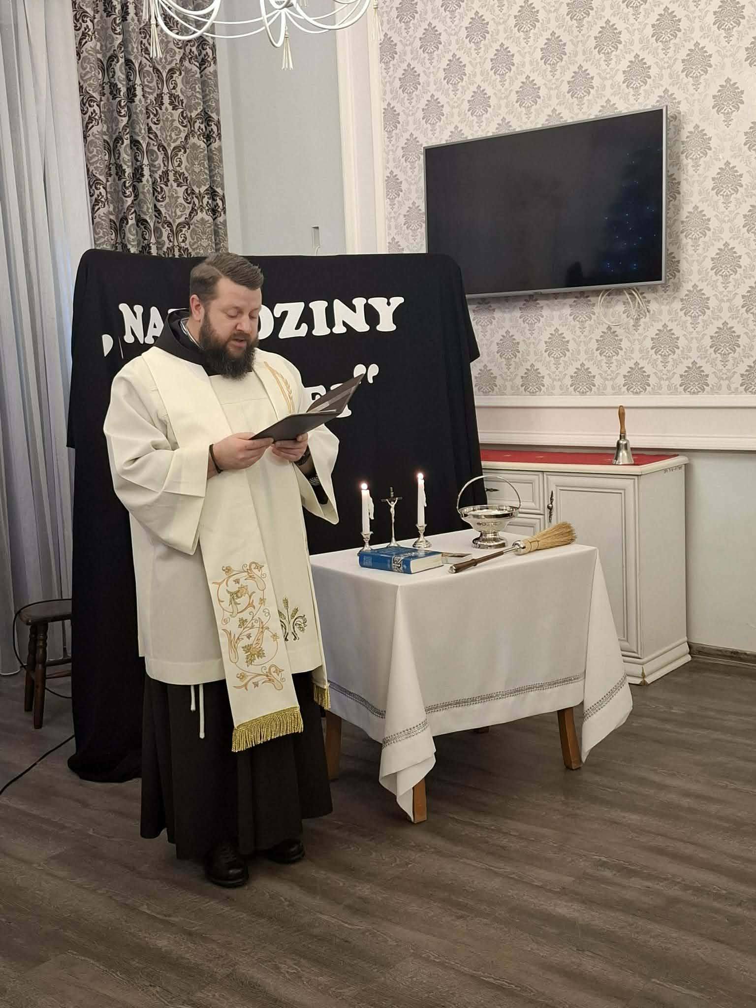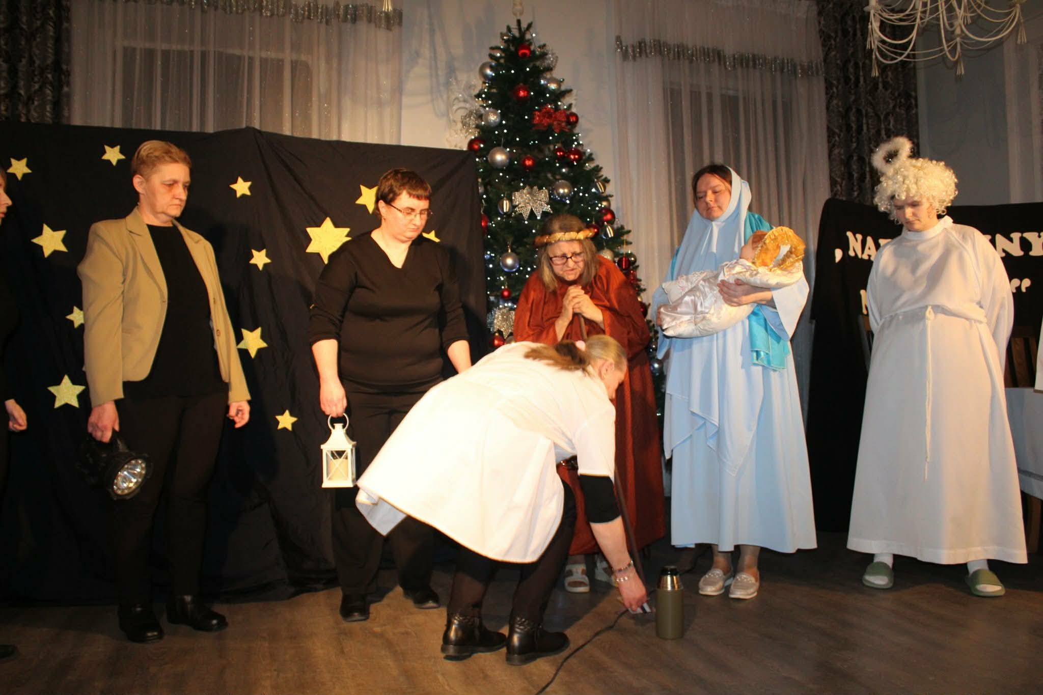 28 stycznia 206 r. w naszym Domu odbyła się wizyta duszpasterska, która rozpoczęła się spektaklem jasełkowym pt. „Narodziny nadziei” w wykonaniu Mieszkańców naszego Domu. Po przedstawieniu nie zabrakło wspólnego śpiewu kolęd przy akompaniamencie akordeonu i saksofonu. Następnie ojciec Szymon odmówił modlitwę błogosławieństwa Domu oraz poświęcił wszystkich zebranych w świetlicy, po czym udał się do pokoi Mieszkańców.