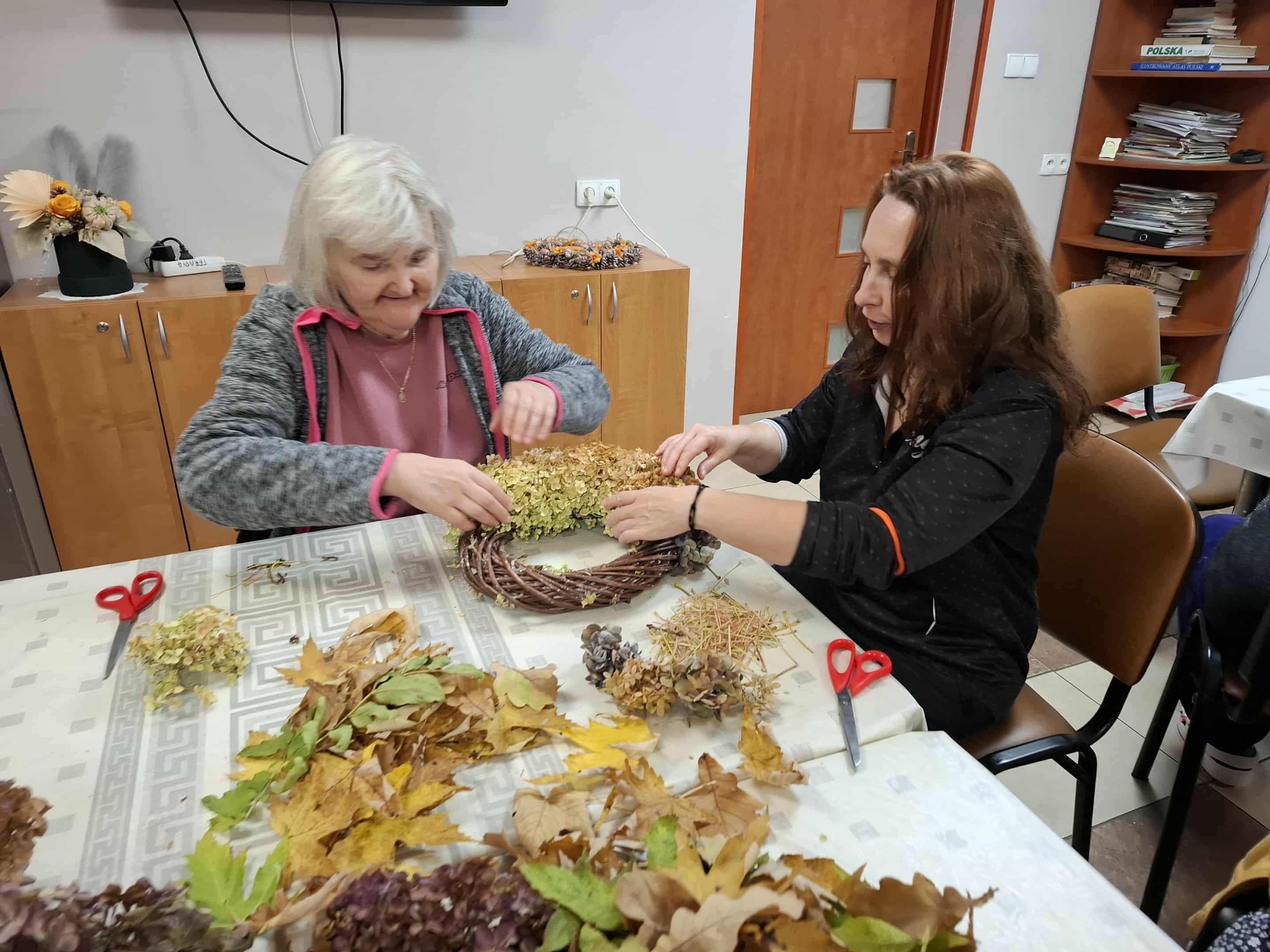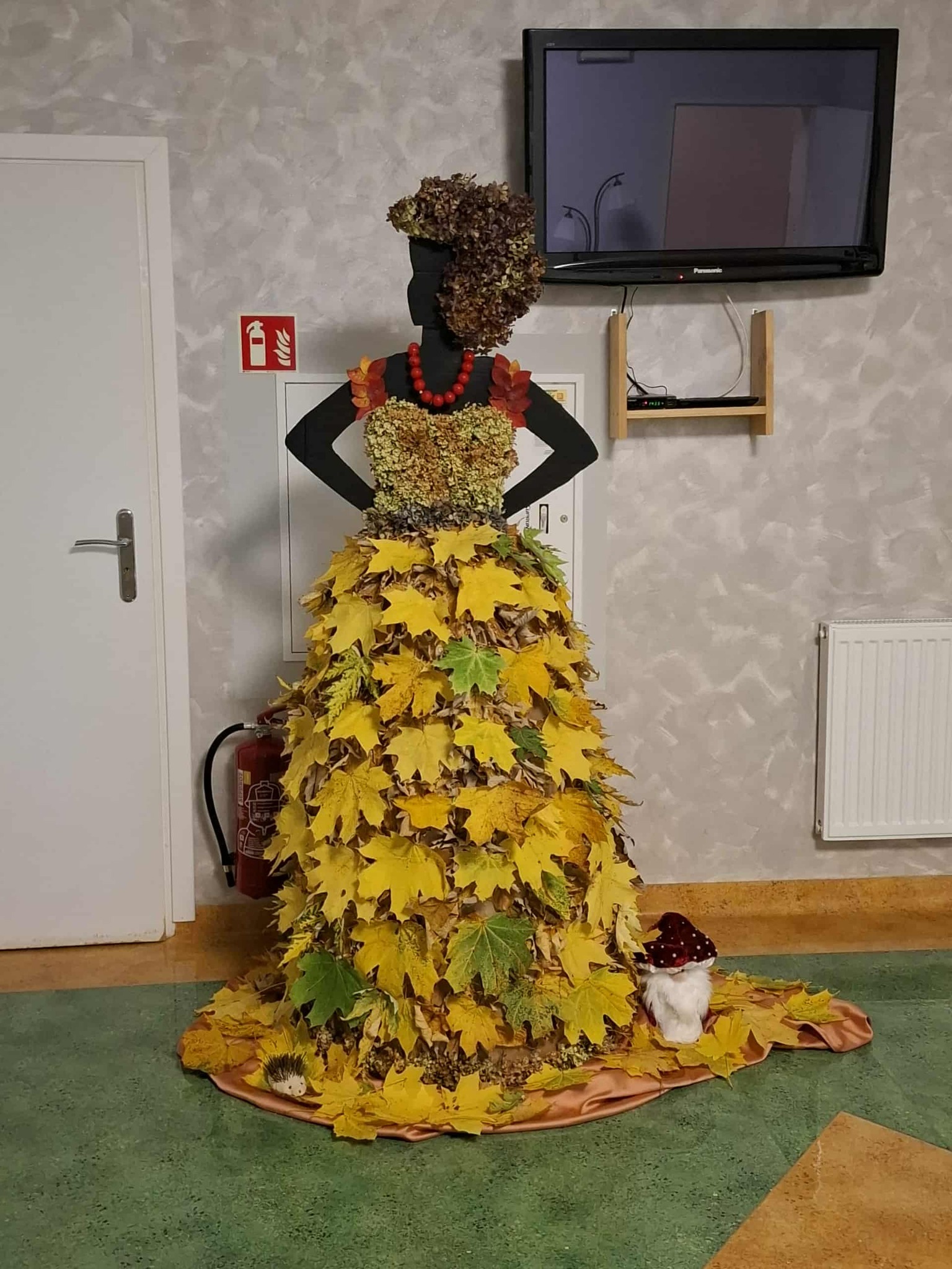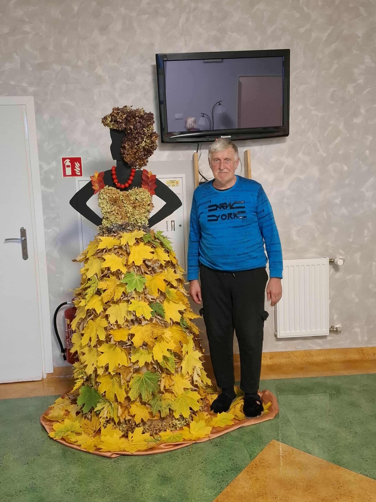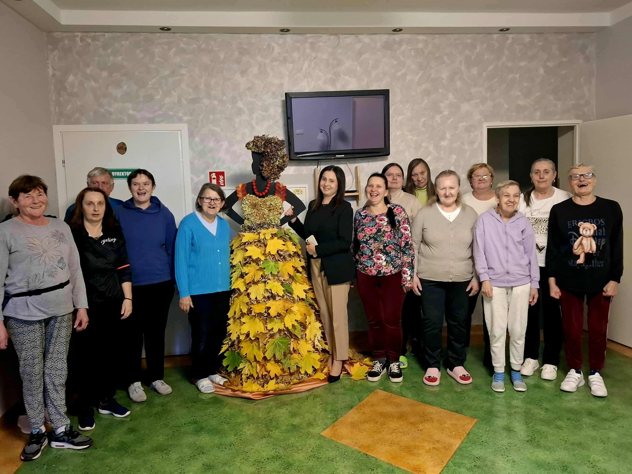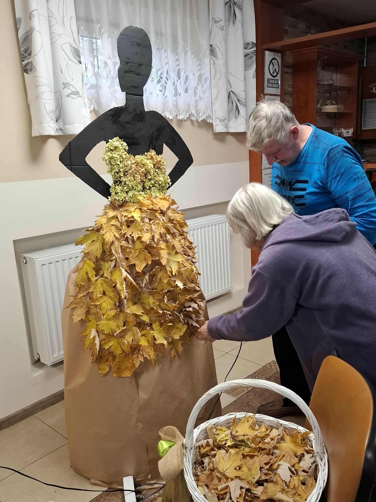 W ramach zajęć na terapii powstała niezwykła praca plastyczna – „Pani Jesień”. To przestrzenna postać naturalnej wielkości, wykonana wspólnie przez Mieszkańców z kartonu, kolorowych liści i innych darów natury. Tworzenie tej pracy było nie tylko okazją do rozwijania zdolności manualnych, ale także do wspólnej zabawy, rozmów i spędzenia czasu w miłej, jesiennej atmosferze. Gotowa „Pani Jesień” zachwyca barwami i pomysłowością, witając wszystkich odwiedzających nasz Dom.