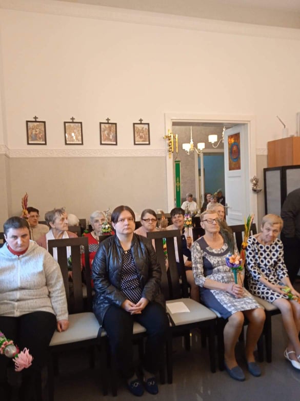 Uroczystości Wielkiego Tygodnia rozpoczęliśmy Niedzielą Palmową. Mszę Świętą w naszej kaplicy odprawił nasz kapelan, o. Jakub Mentel. Podkreślił on znaczenie momentu wjazdu Chrystusa do Jerozolimy, jako niezwykle ważnego w misterium Zbawczym Chrystusa. Tak bowiem rozpoczyna się Jego droga do królowania z tronu Krzyża. Również i w naszej wspólnocie mieliśmy okazję uczestniczyć w obrzędzie poświęcenia tradycyjnych palm, które mieszkańcy wykonali własnoręcznie na terapii zajęciowej.