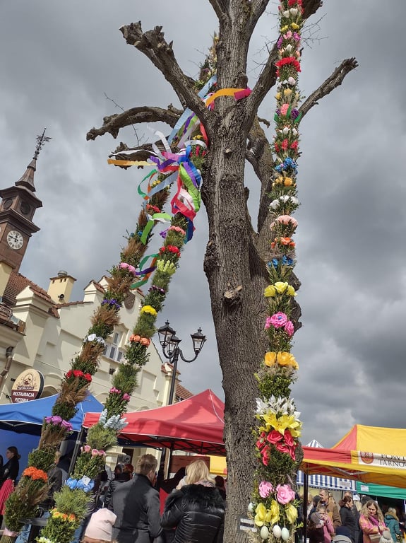 Następnie mieszkańcy udali się na zakliczyński rynek i wzięli udział w Zakliczyńskim Kiermaszu Wielkanocnym oraz konkursie Palm Wielkanocnych. Na rynku oprócz stoisk z wyrobami wielkanocnymi i pięknymi stroikami, była również degustacja tradycyjnego żurku wielkanocnego, który serwował burmistrz Zakliczyna Pan Dawid Chrobak.