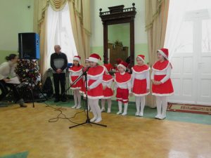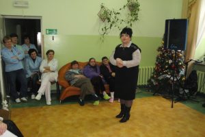 Przedstawienie przygotowały Pani Sylwia Żychowska i Pani Agnieszka Gołąb, które wraz z Panią Dyrektor SP Elżbietą Malawską-Pajor przybyły do naszego Domu z dziećmi. Jak zwykle występ, który zaprezentowały dzieci był bardzo piękny i radosny. Mieszkanki z rozrzewnieniem oglądały pląsy trzecioklasistów i wysłuchały kolęd, pastorałek i innych utworów w wykonaniu pierwszoklasistów. Za występ dzieci otrzymały gromkie brawa, a po nim zostały zaproszone do sali terapii zajęciowej na słodki poczęstunek.