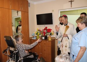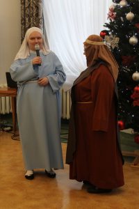 Na widowni nie zabrało również o. Wacława Bujaka wraz z nowicjuszami, a także pracowników, mieszkanek i uczestników ŚDS. Występ został ciepło przyjęty przez publikę i nagrodzony gromkimi brawami. Po zakończonym przedstawieniu ks. Biskup odmówił modlitwę błogosławieństwa kolędowego i wraz z o. Wacławem udali się pobłogosławić pokoje mieszkanek, biura oraz budynek ŚDS. Pięknie dziękujemy ks. biskupowi za przybycie do Naszego Domu i zapraszamy ponownie.