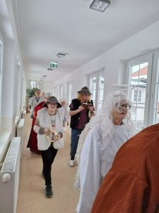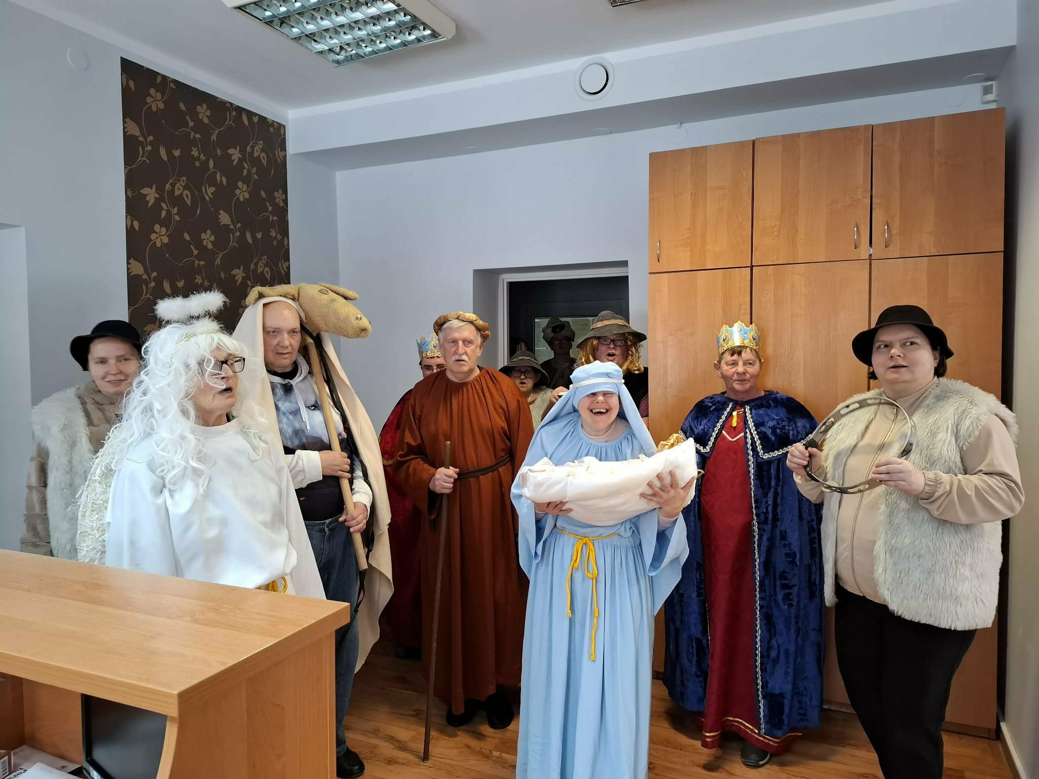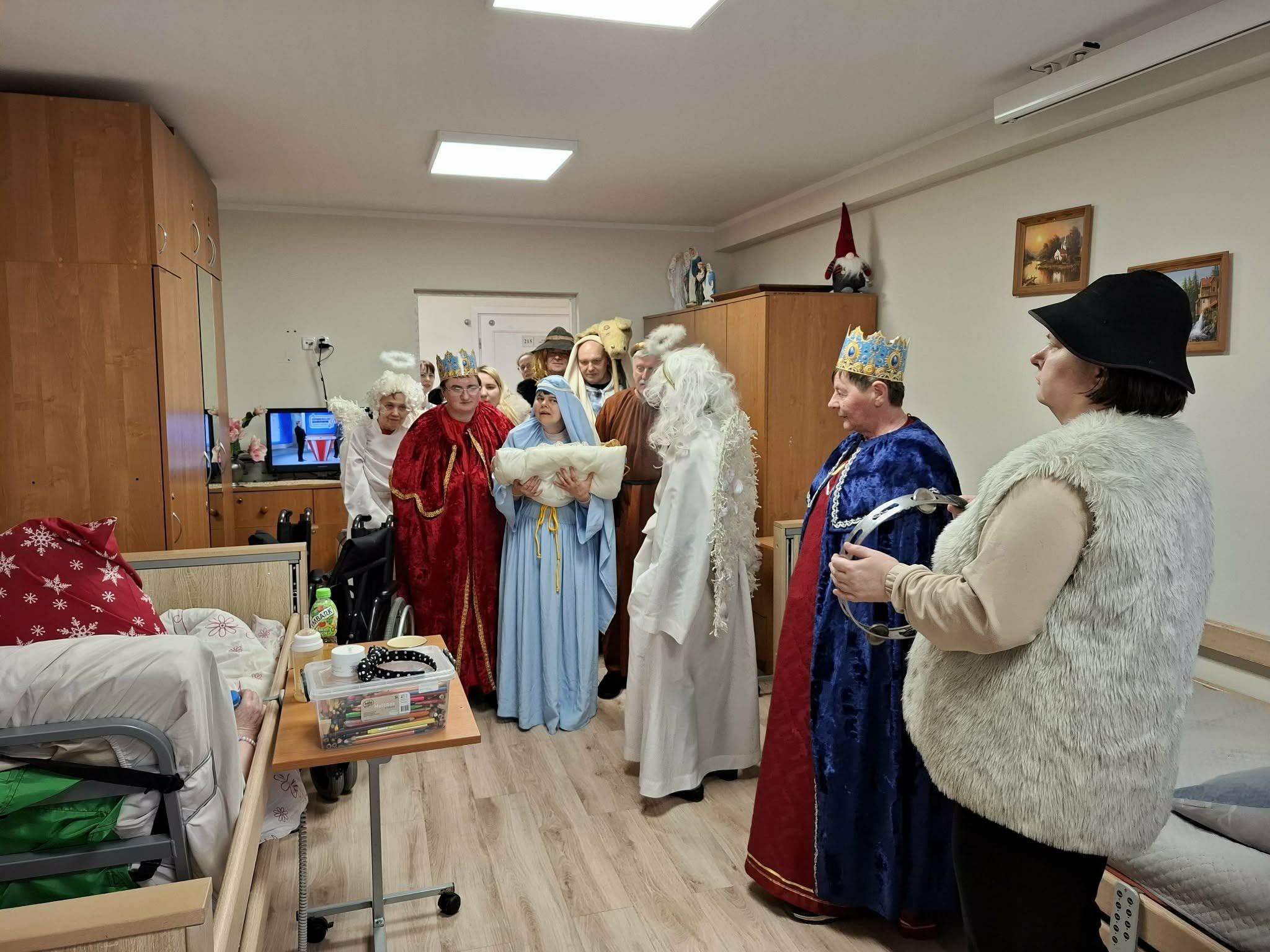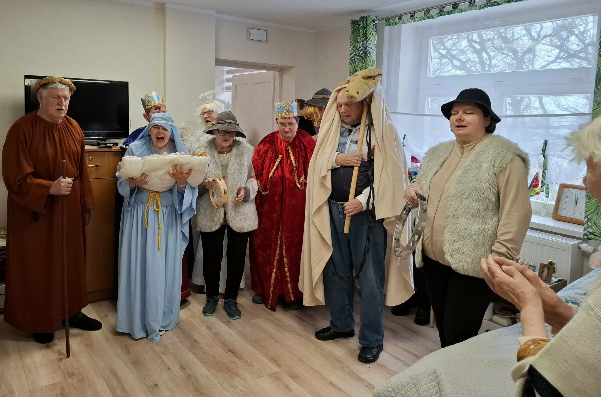 Zgodnie z tradycją lat ubiegłych, nasza grupa kolędnicza wyruszyła dziś z kolędą po Domu. Odwiedziliśmy Mieszkańców przebywających na świetlicy, osoby leżące w pokojach, a także biura, niosąc wszystkim świąteczną radość, uśmiech i ciepło wspólnego kolędowania.