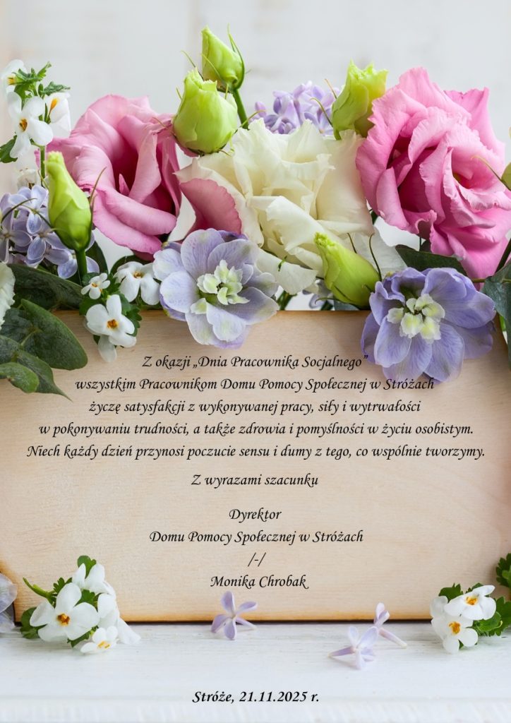 Życzenia od Pani Dyrektor Moniki Chrobak z okazji „Dnia Pracownika Socjalnego” 2025